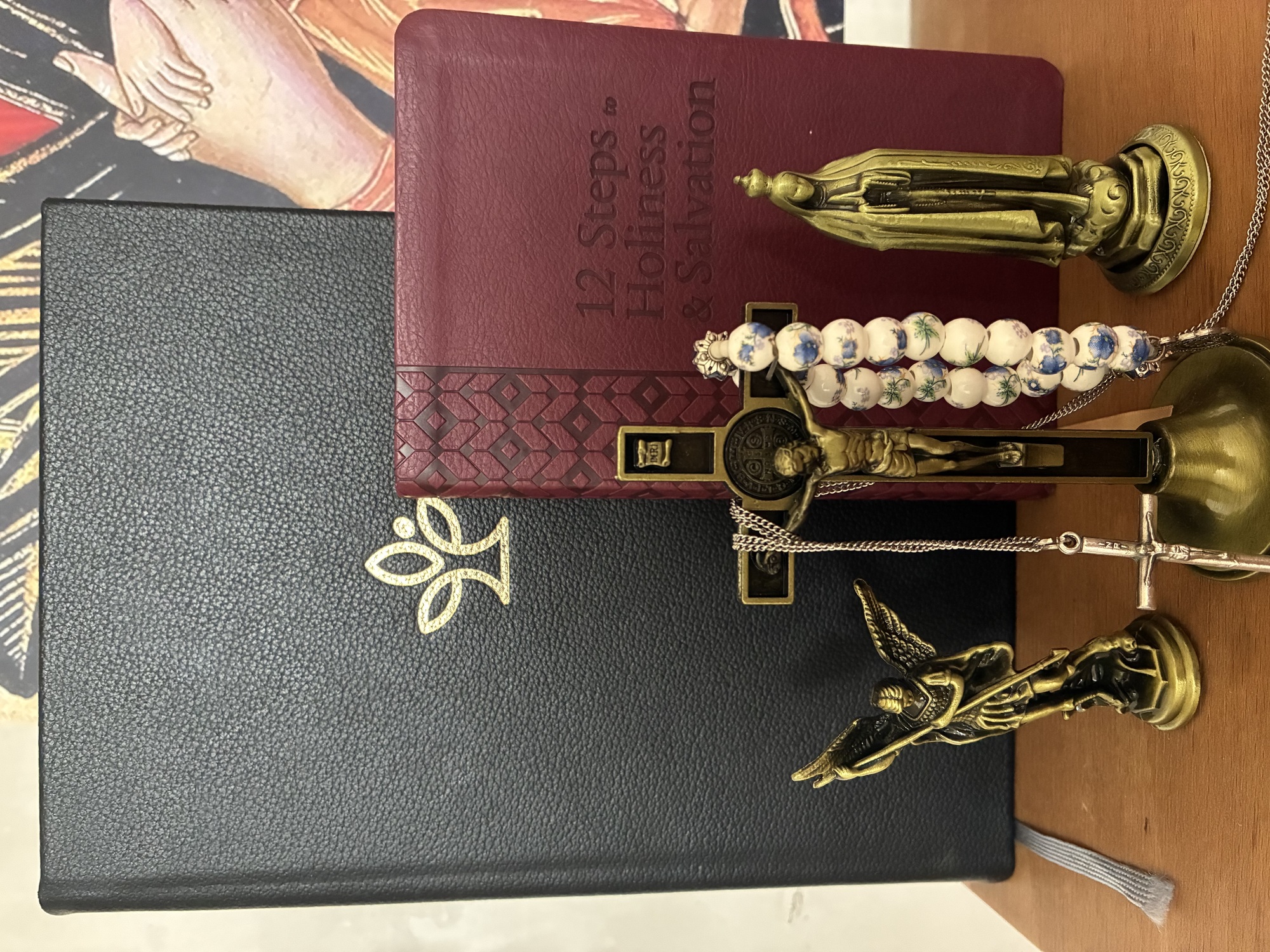 I have 3 little statues, of Mary, St. Michael and Jesus.
